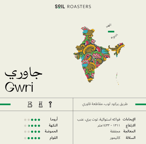 حموضة قليل | واسطة | عالي ملفات تعريف التذوق ملف تعريف القهوة مواصفات القهوةقيممتنوعإرث عائلي -التخمير لاهوائي -ارتفاع 1950 – 2200 متر -منطقة النمو جوجي -درجة الجودة 89.5 -وزن 250 جرام