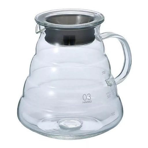 وعاء تقديم هاريو V60-02 سعة 600 مل وعاء هاريو V60 مصممٌ بإتقان لتحضير القهوة يدويًا في المنزل أو المقهى. مصنوع بالكامل من زجاج ياباني متين ومقاوم للحرارة. مزود بغطاء زجاجي مطلي بالسيليكون، مما يضمن بقاء مشروبك ساخنًا لفترة طويلة. متوافق تمامًا مع جميع منتجات سلسلة هاريو V60، ويوصى به بشكل خاص مع أداة التنقيط V60-02 من هاريو. كما أن أداة التقديم آمنة للاستخدام في الميكروويف.