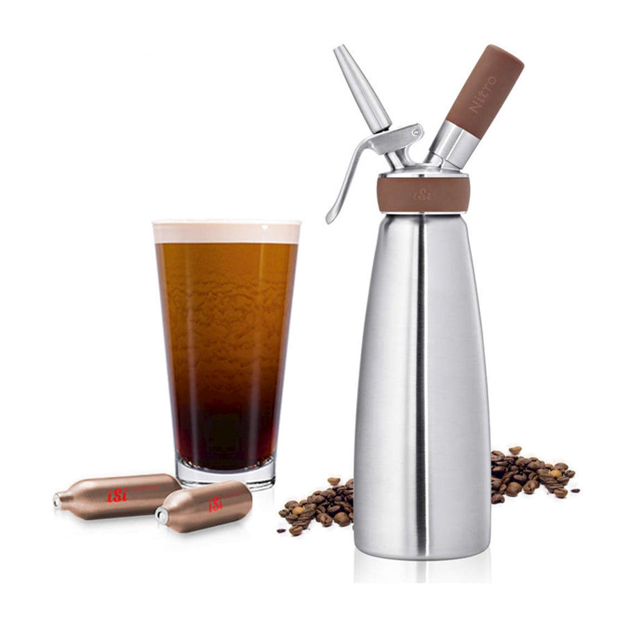 يُضفي النيتروجين قوامًا كريميًا مخمليًا ورغوة تدوم طويلًا للمشروبات والكوكتيلات. يتيح لك جهاز نيترو ويب من آي سي توزيع مشروب طازج مع كل حصة، كما يسمح نظام آي سي المغلق المصمم للحفاظ على نكهته دون تغيير لعدة أيام في الثلاجة. عملية التوزيع بسيطة: ما عليك سوى ملء جهاز نيترو ويب، وشحنه بشاحن آي سي نيترو، ثم رجّه، وتوزيعه. شاهد كيف يتدفق غاز النيتروجين في السائل، بينما تتشكل رغوة كثيفة أمام عينيك. رقم الموديل: 1790 01، لنقع غاز النيتروجين في السائل، ولتحضير قهوة النيترو والشاي والكوكتيلات. مصنوع من الفولاذ المقاوم للصدأ المصقول مع مقبض سيليكون بني 6063589.