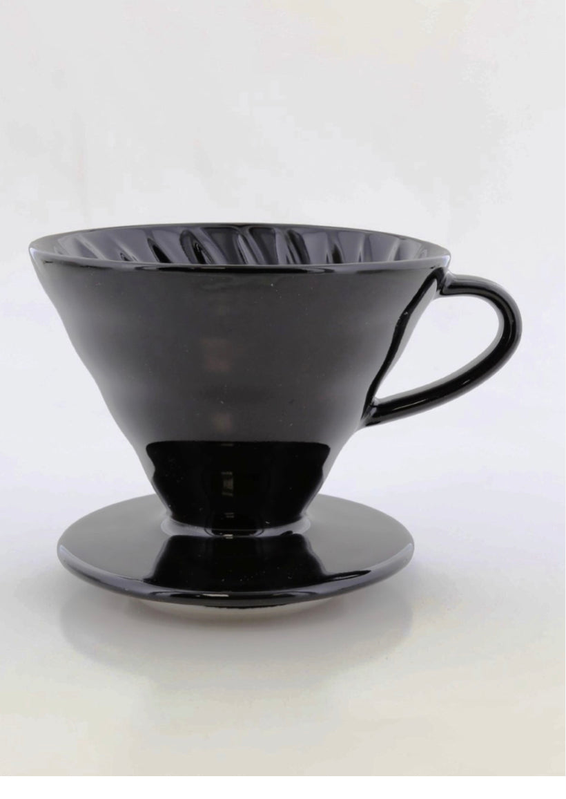 Hario V60 Ceramic Dripper 01 SpecificationSize: W119 × D100 × H82mmCapacity: 1-2 cupsWeight: 320gDish Washer Safe PRODUCT DESCRIPTION Hario V60 - 01 Ceramic Coffee Dripper has a ceramic cone-style filter with vortex radial drain pattern and an open end, allowing coffee to drop/drip as it needs providing a greater depth and character during extractionWhy the cone shape? The cone shaped paper filter adds depth to the coffee layer, so that the water flows to the center, extending the amount of time it is in contact with the ground coffee.