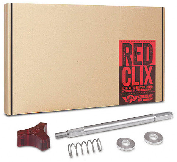 This special combination of RX35 parts called RED CLIX, have been designed for the professional coffee expert in a competition situation. Both the axle and the grind grade dial have been equipped with an ultra fine precision thread. The main difference is the expanded click range for the same particle size range and the same brewing methodology. The click steps with RED CLIX are much finer, but at the same time, the click mechanism itself, is as solid and as stable as the standard version.