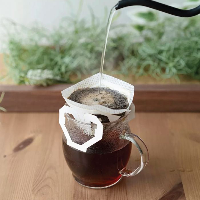The Hario My Cafe Drip Filter is a pocket-sized all-in-one filter brewer. It conveniently fits over most mugs and insulated tumblers and is perfect for when you want to have a small amount of coffee (about 15g) for an afternoon pick-me-up. With its compact design, you can have a small stack of filters tucked away in your office desk, alongside some filter coffee and you're ready to make some delicious coffee! Whether you don't want to be weighed down by coffee gear for your short camping trip, or you want some emergency coffee for when you travel in case you can't make it to a cafe, the My Cafe Drip Filter is like a little Pocket Coffee Hero that will always be ready to serve!