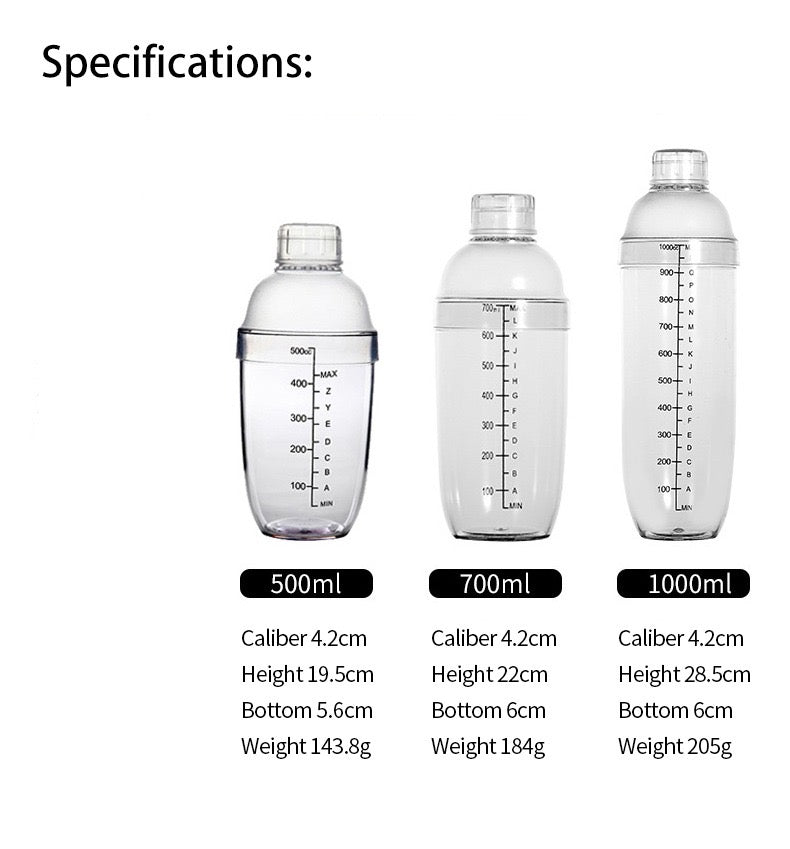 Level up your mixology game with this 1000ml Plastic Cocktail Shaker, designed for both home bartenders and professionals.